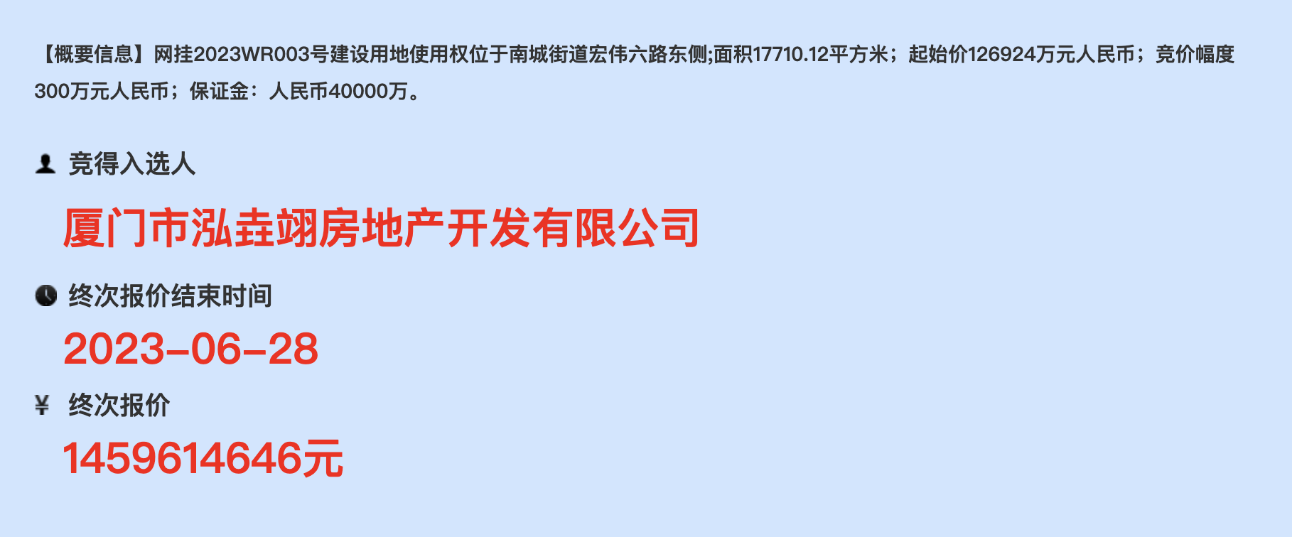 最终,国企厦门建发以近14.59亿元的价格将其“收入囊中”(据说,厦门市泓垚翊房地产开发有限公司关联企业是厦门建发)