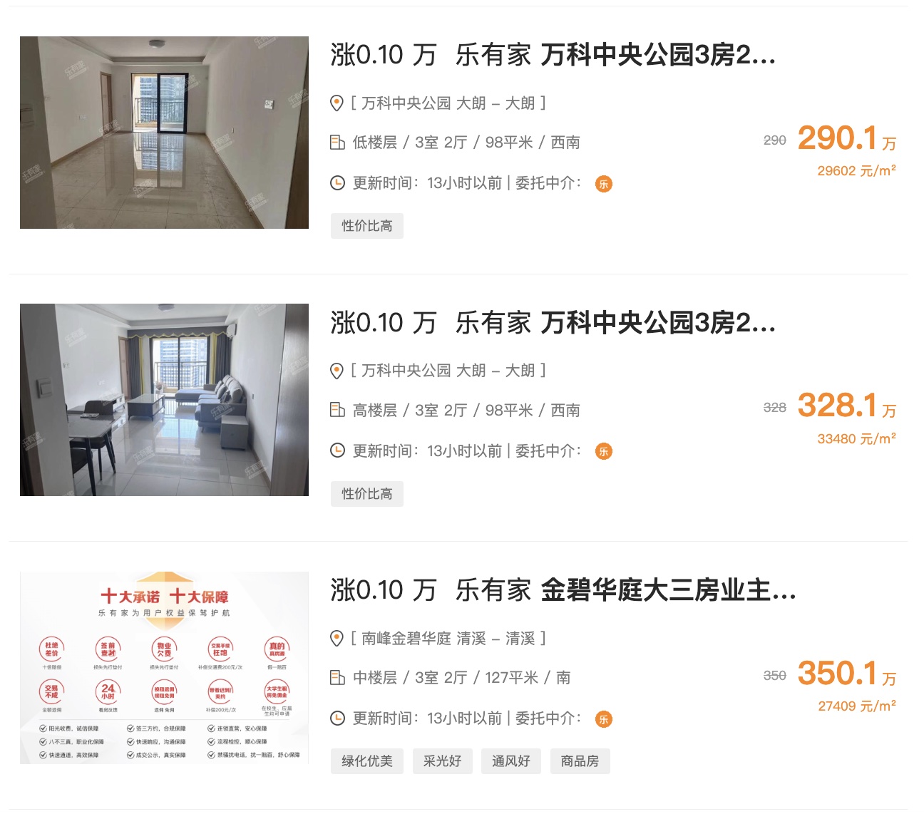 目前,东莞二手房的挂牌高峰仍未明显退潮,仅是诸葛找房平台就已超过9万套,把其他平台上的不同房源算上的话,就不止了。