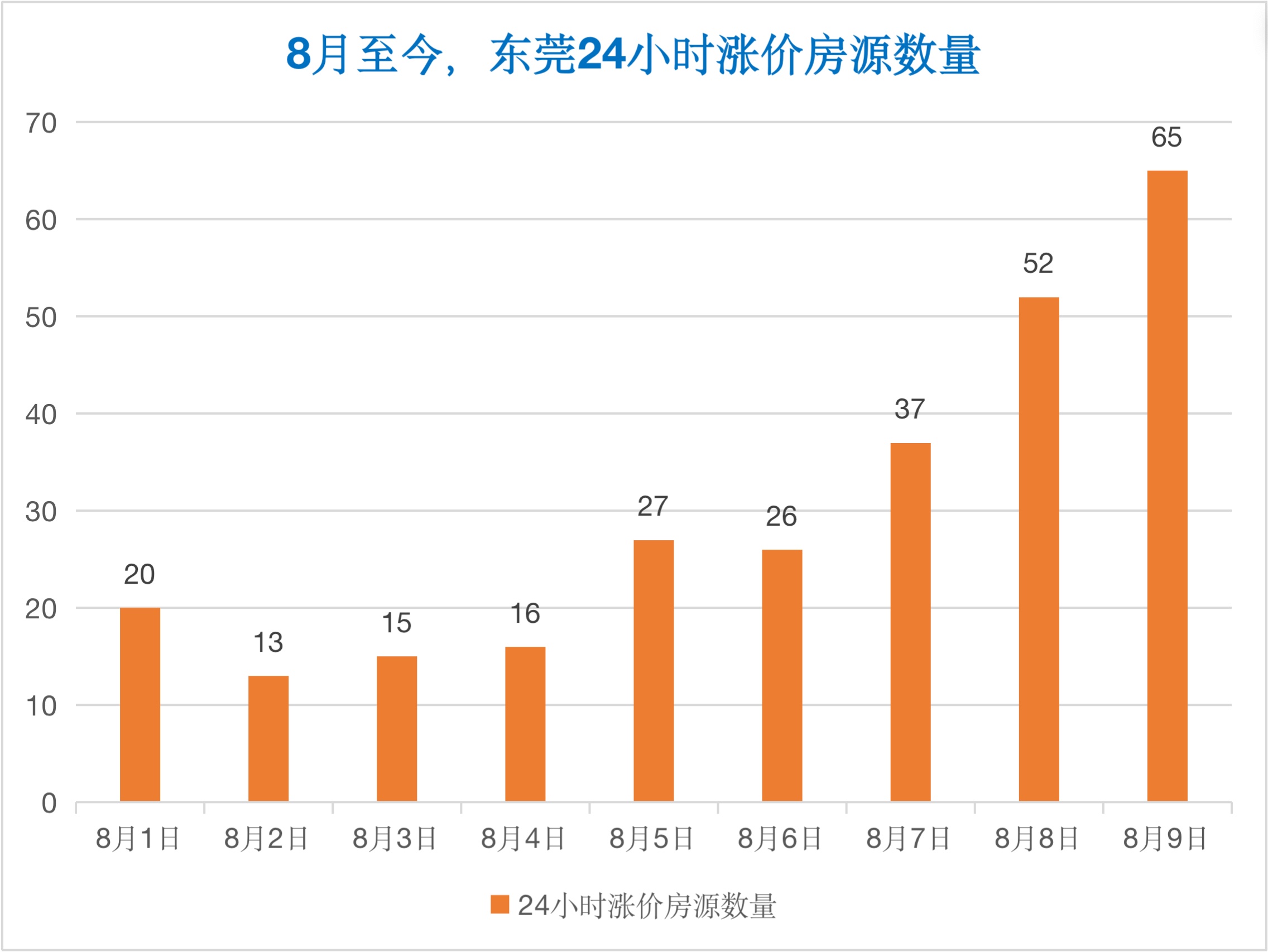 从8月开始,东莞二手房涨价房源基本在呈上扬趋势。