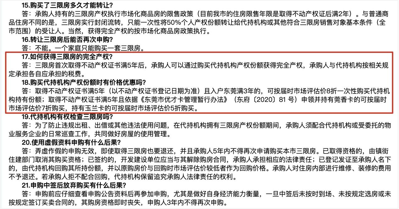 ◇ 图片截自《东莞市三限房运营管理实施细则》政策解读