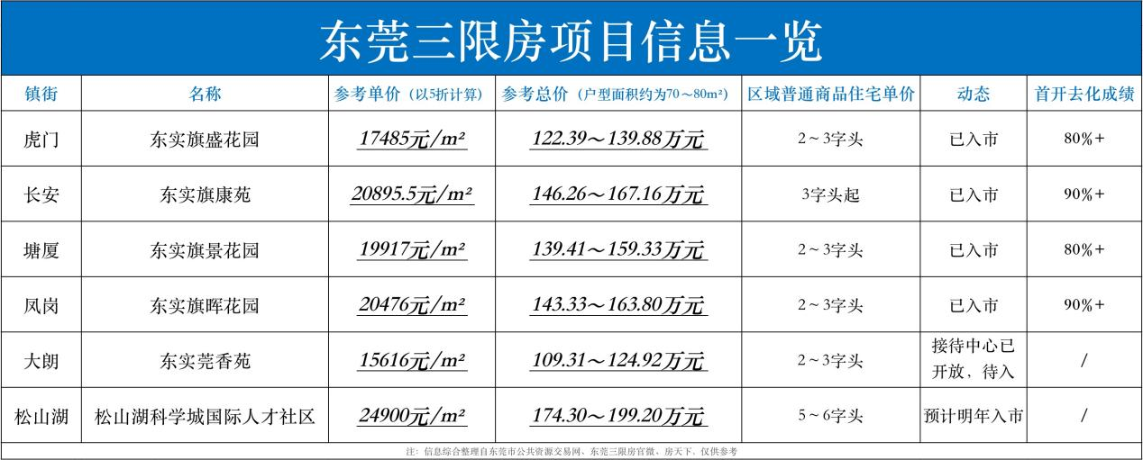 当前已经入市的4个三限房项目,销售成绩都非常不错,虎门、塘厦项目首开劲销超过8成,长安、凤岗项目首开劲销超过9成(信息源于东莞三限房),已在市场上分流了一些刚需客户。