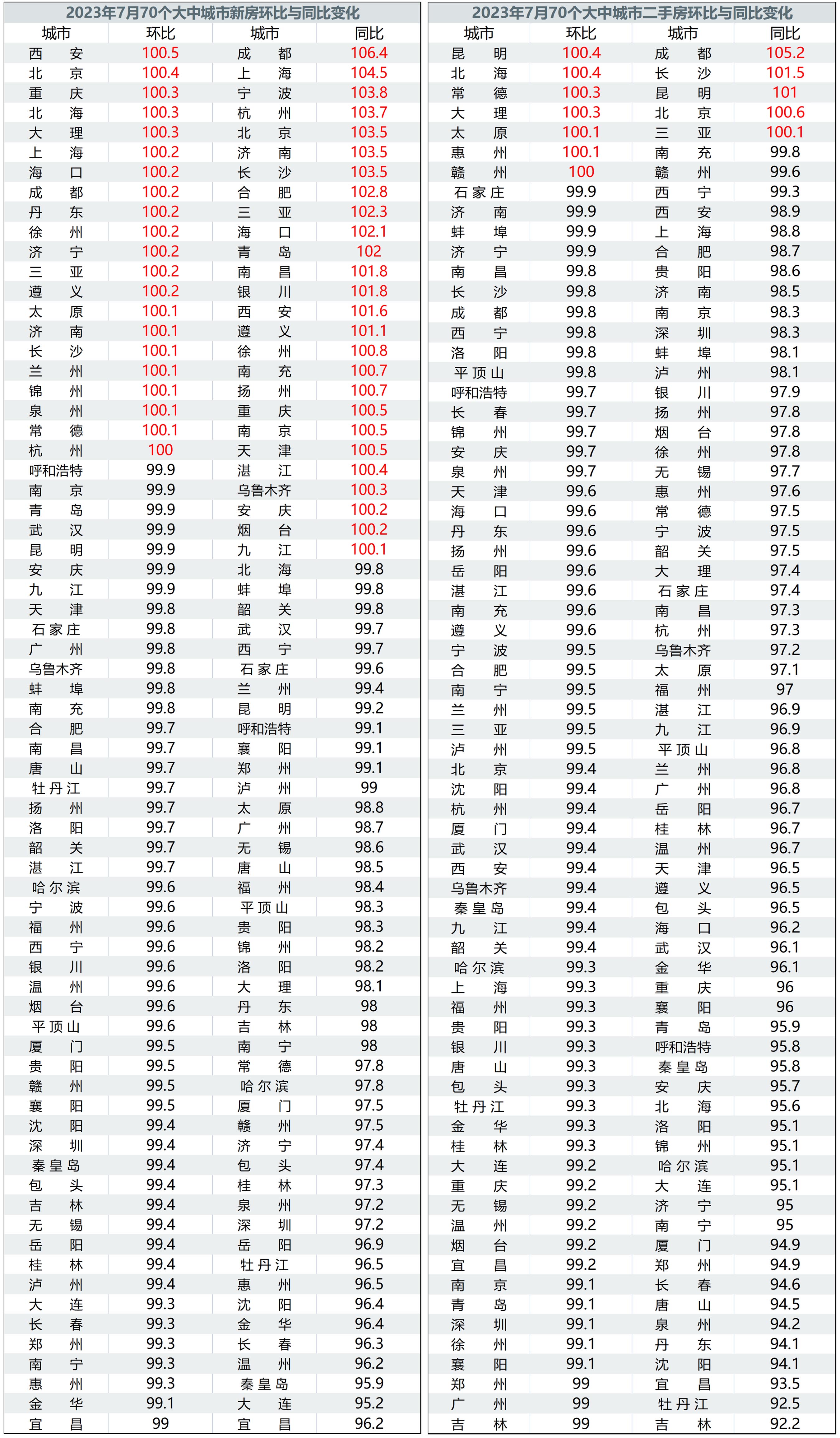 例如:70个大中城市中,7月份有49个出现了新房价格环比下跌、63个出现二手房价格环比下跌。
