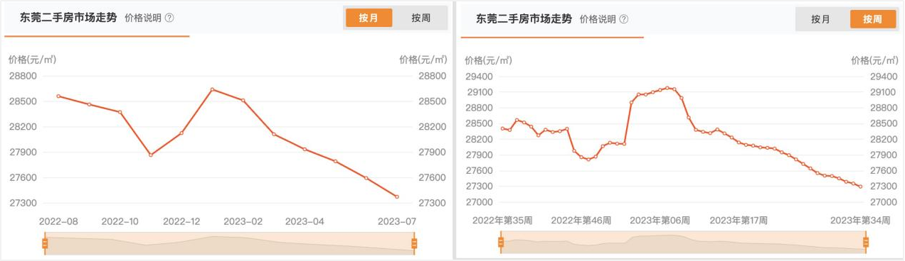 ◇ 东莞二手房挂牌价格走势,图片截自诸葛找房平台