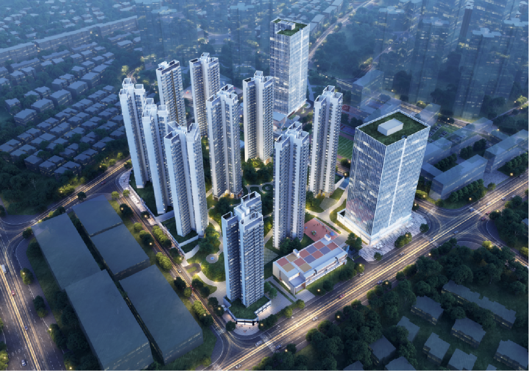 简要概括一下,这是一个集住宅、商业中心、办公楼、学校、公园等设施于一体的城市综合体。