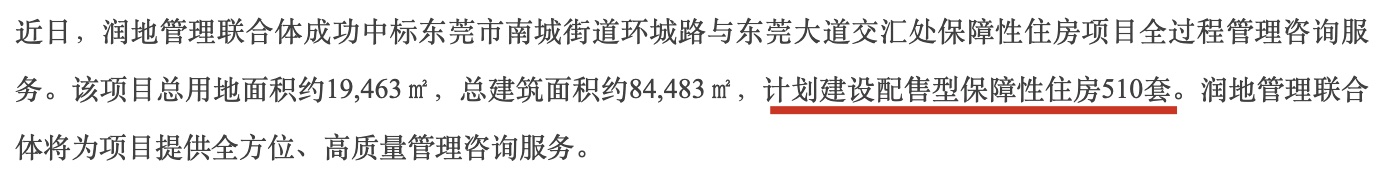 据不完全统计,城区配售型保障房有5个,分别是东城牛山保障房、东城樟村保障房、万江新村保障房、南城保障房(樟村有2个保障房项目)。