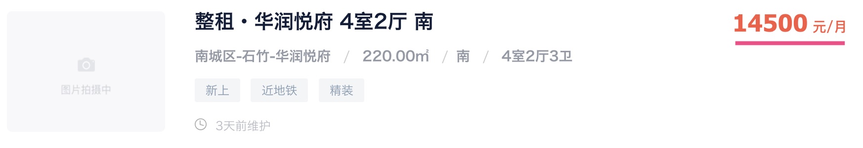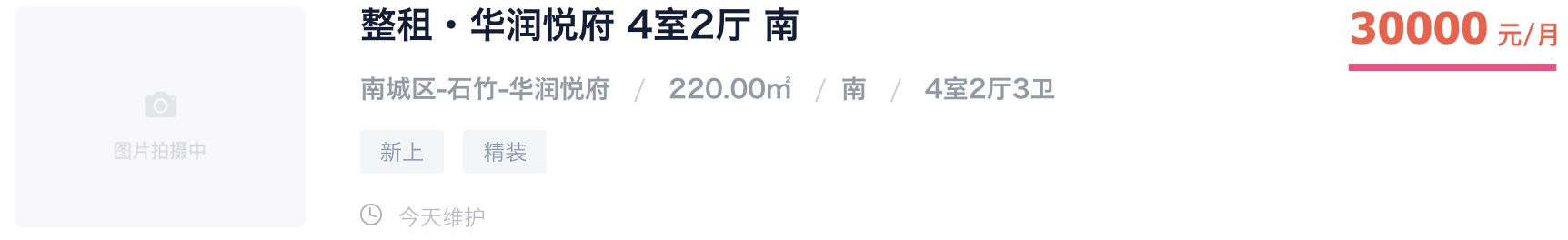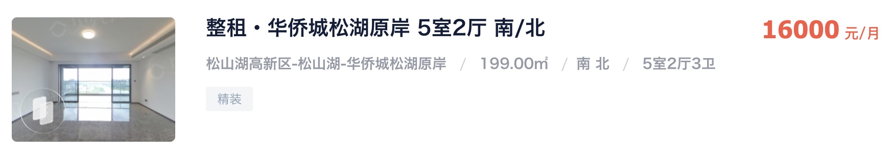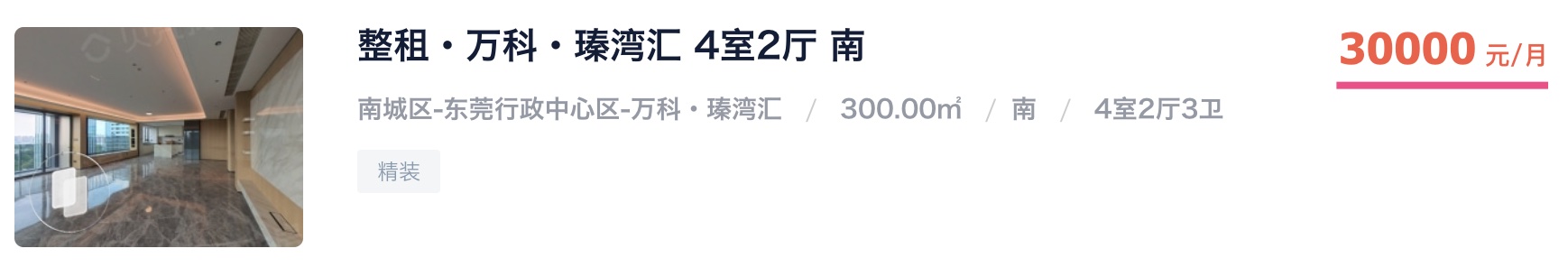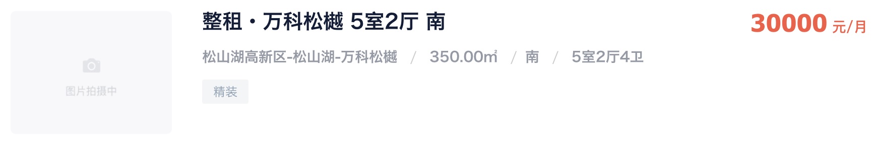 -- 万科松樾,仅有1套放租,面积约350m²,月租3万。