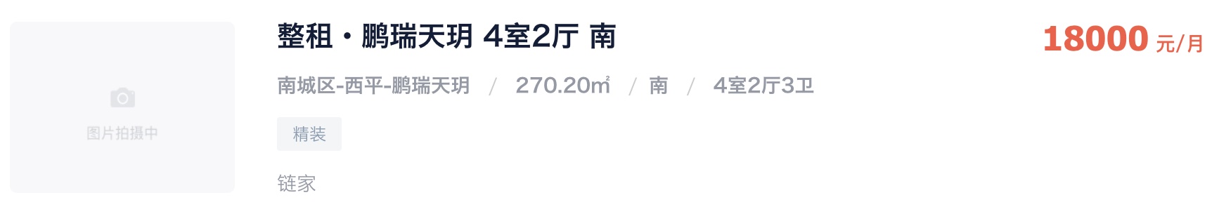 -- 鹏瑞天玥,最低约1.8万/月,不过房源面积是约270m²。