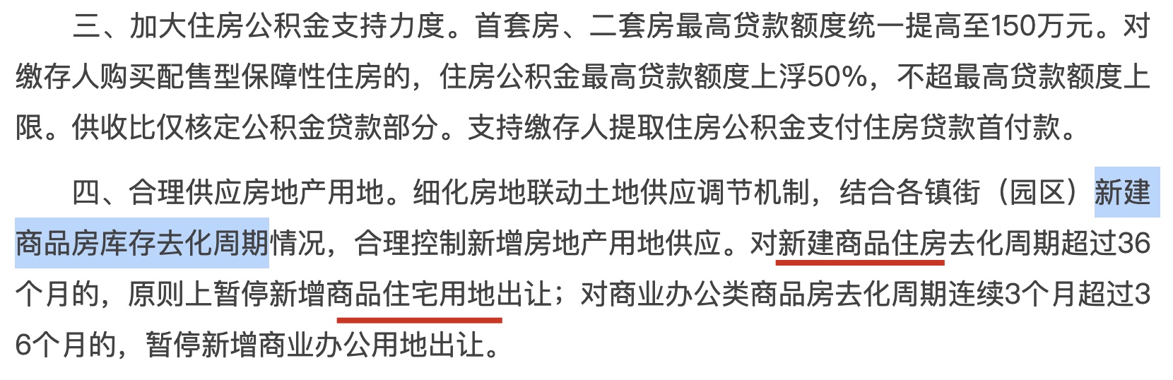 为从源头上去库存,新房去化周期超过36个月的镇街,将要暂停供地。